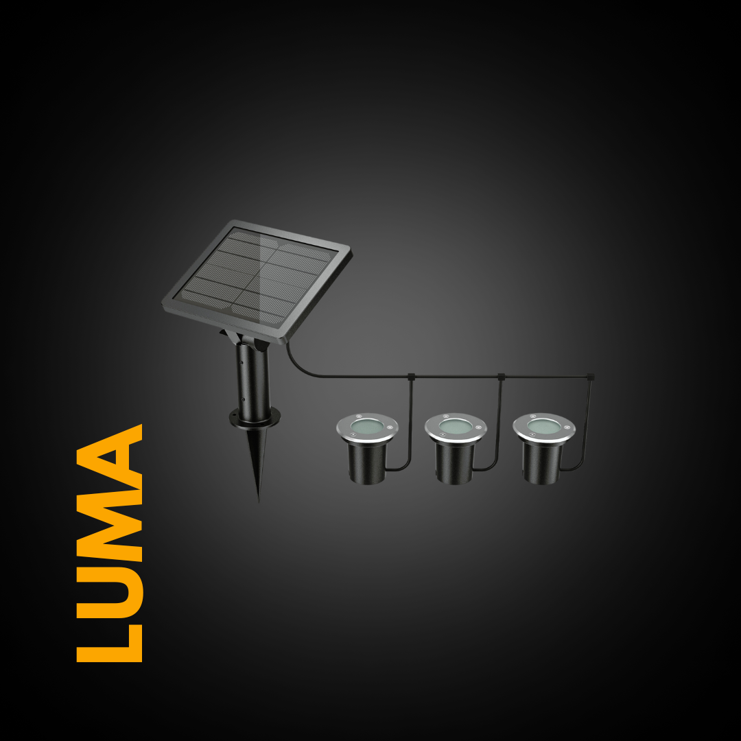 Grâce à son panneau solaire déporté équipé d’un capteur avec amplificateur d’UV, LUMA se recharge efficacement même par temps nuageux ou dans des régions à ensoleillement limité. Les deux batteries ultra-puissantes de 4500 mAh Li-Ion assurent un éclairage de 300 lumens (100 lumens par spot) pendant 6 à 8 heures.